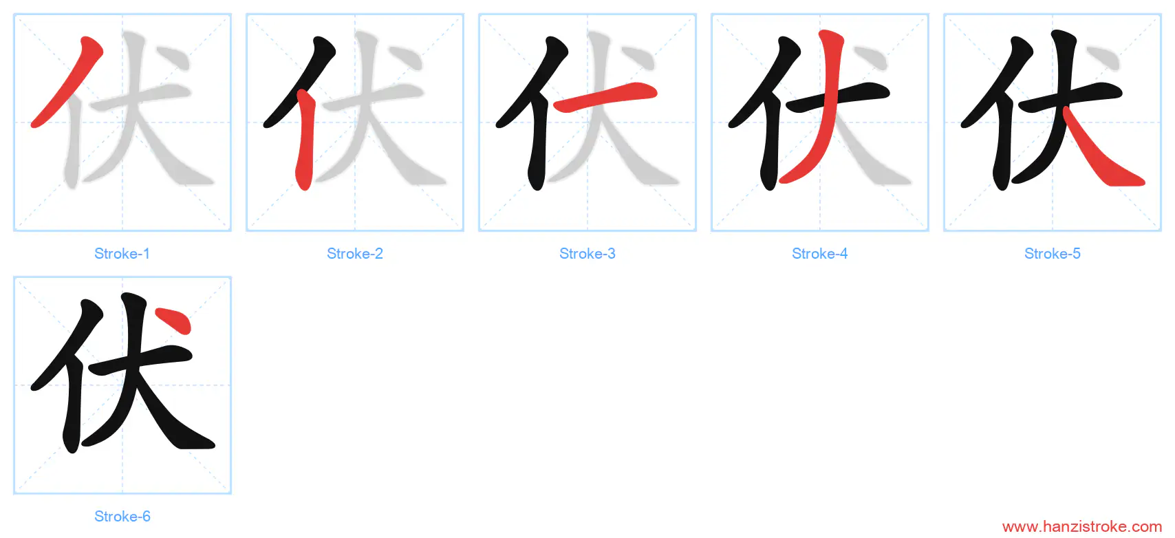 Free Printable Handwriting Practice with Stroke Order: 伏