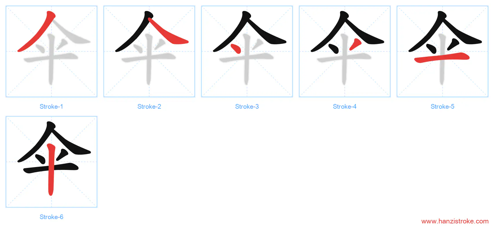 Free Printable Handwriting Practice with Stroke Order: 伞