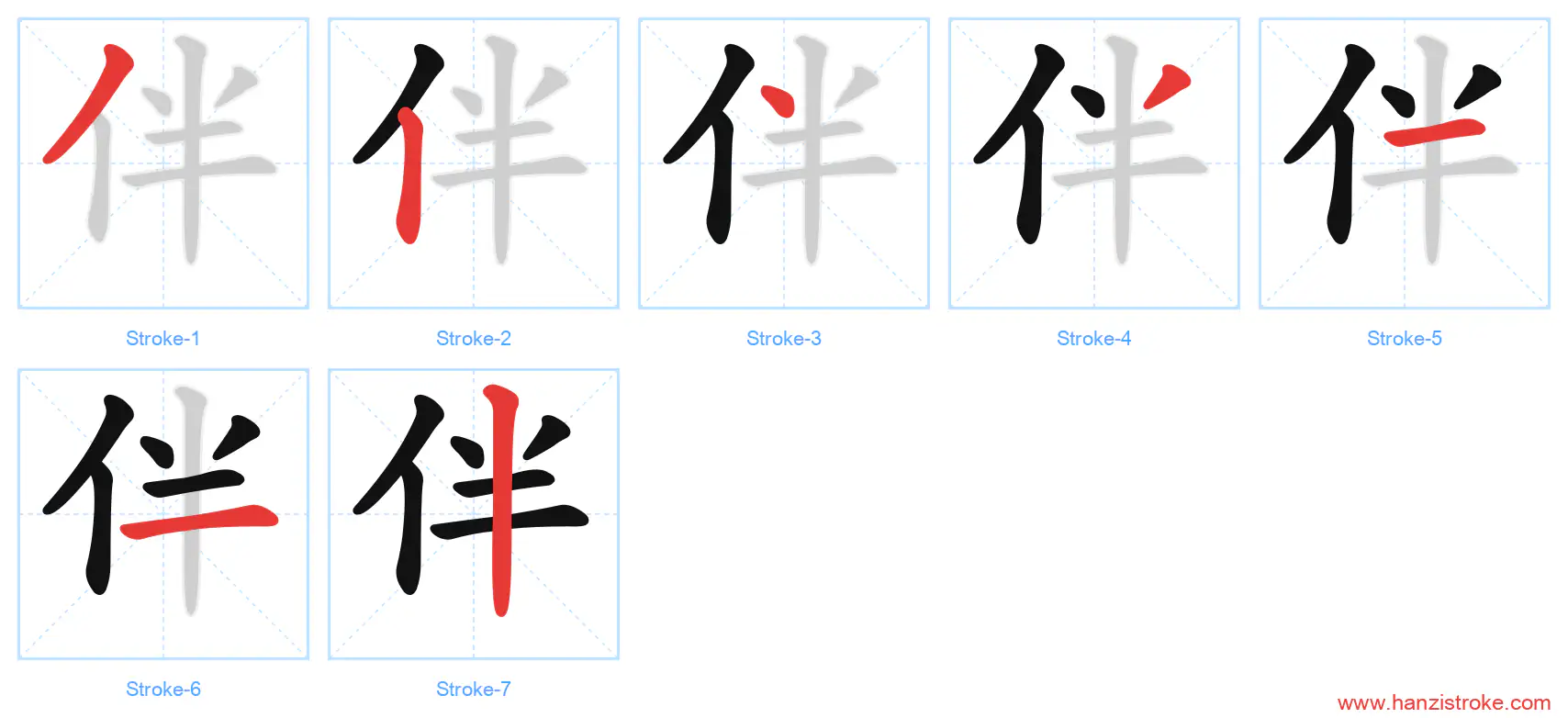 Free Printable Handwriting Practice with Stroke Order: 伴