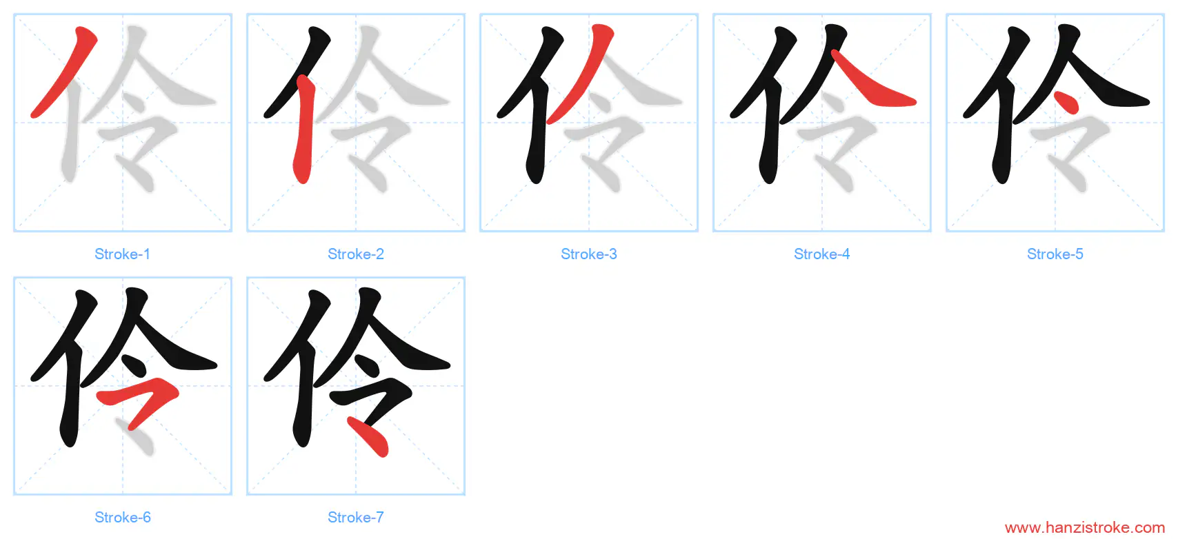 Free Printable Handwriting Practice with Stroke Order: 伶