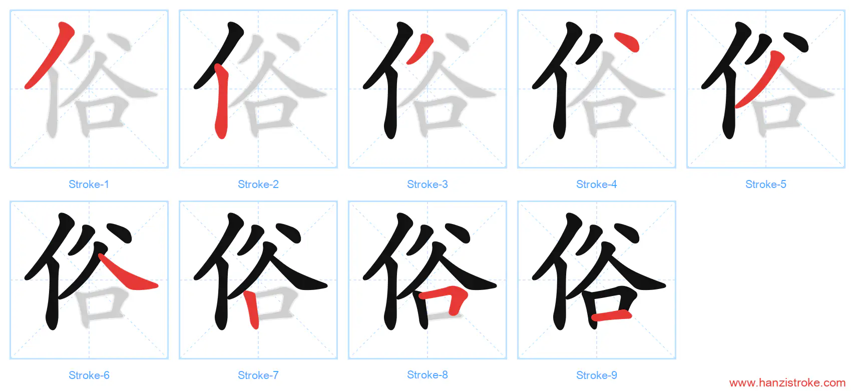 Free Printable Handwriting Practice with Stroke Order: 俗