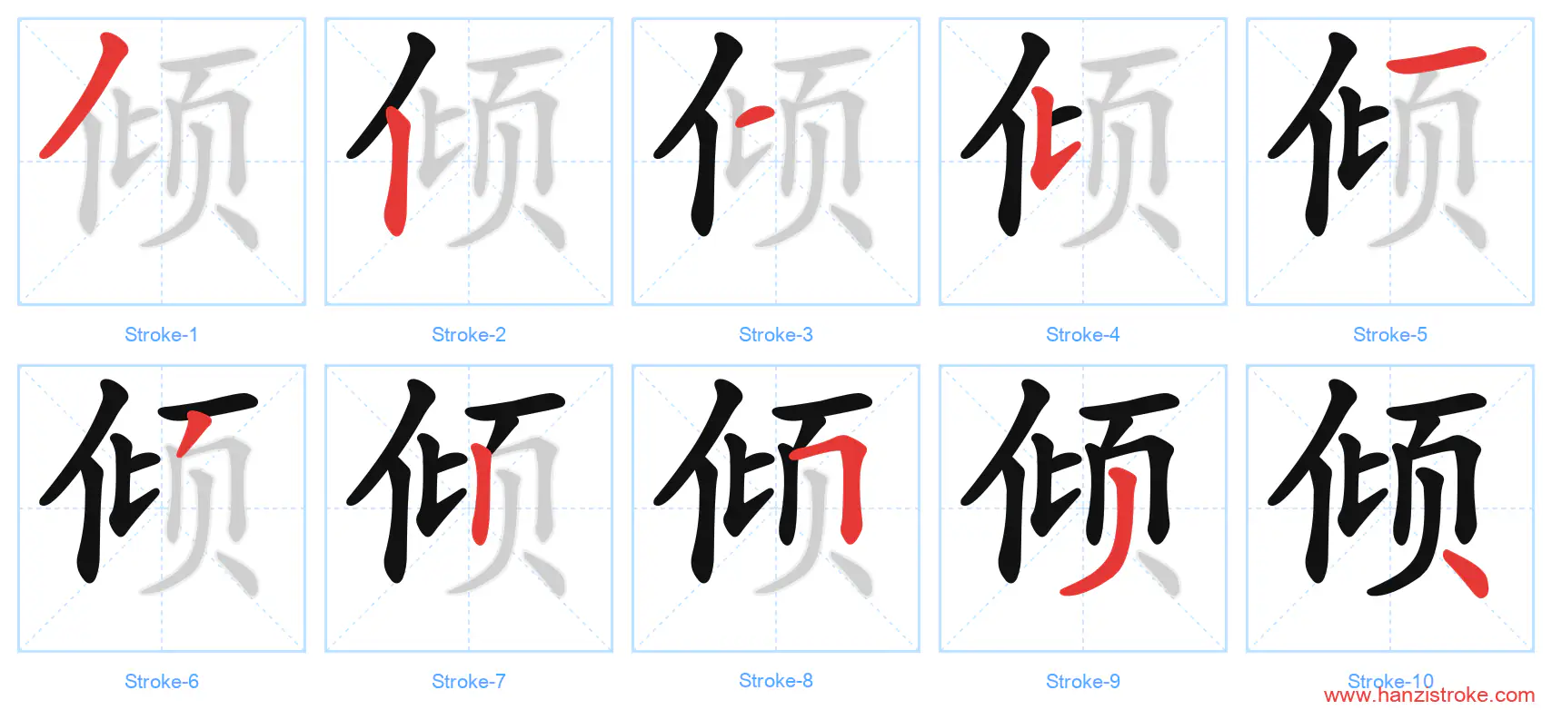 Free Printable Handwriting Practice with Stroke Order: 倾