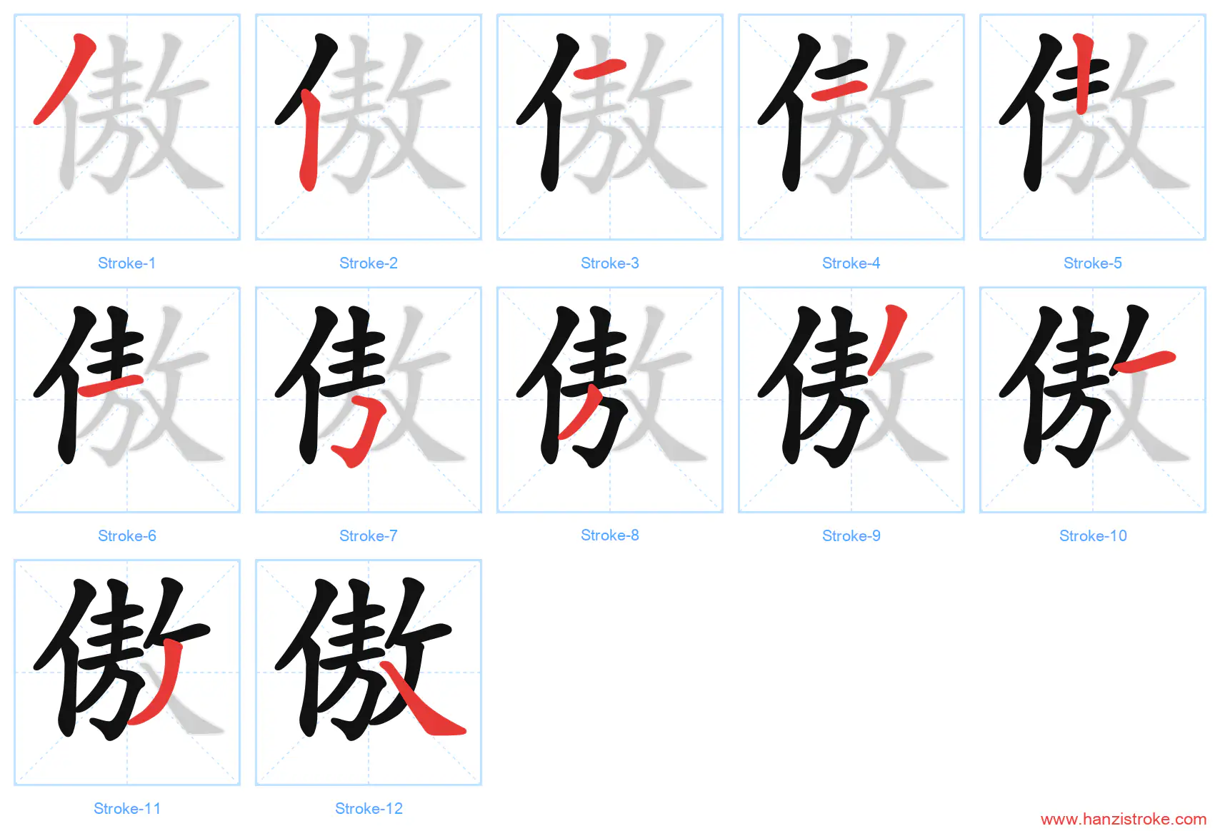 Free Printable Handwriting Practice with Stroke Order: 傲