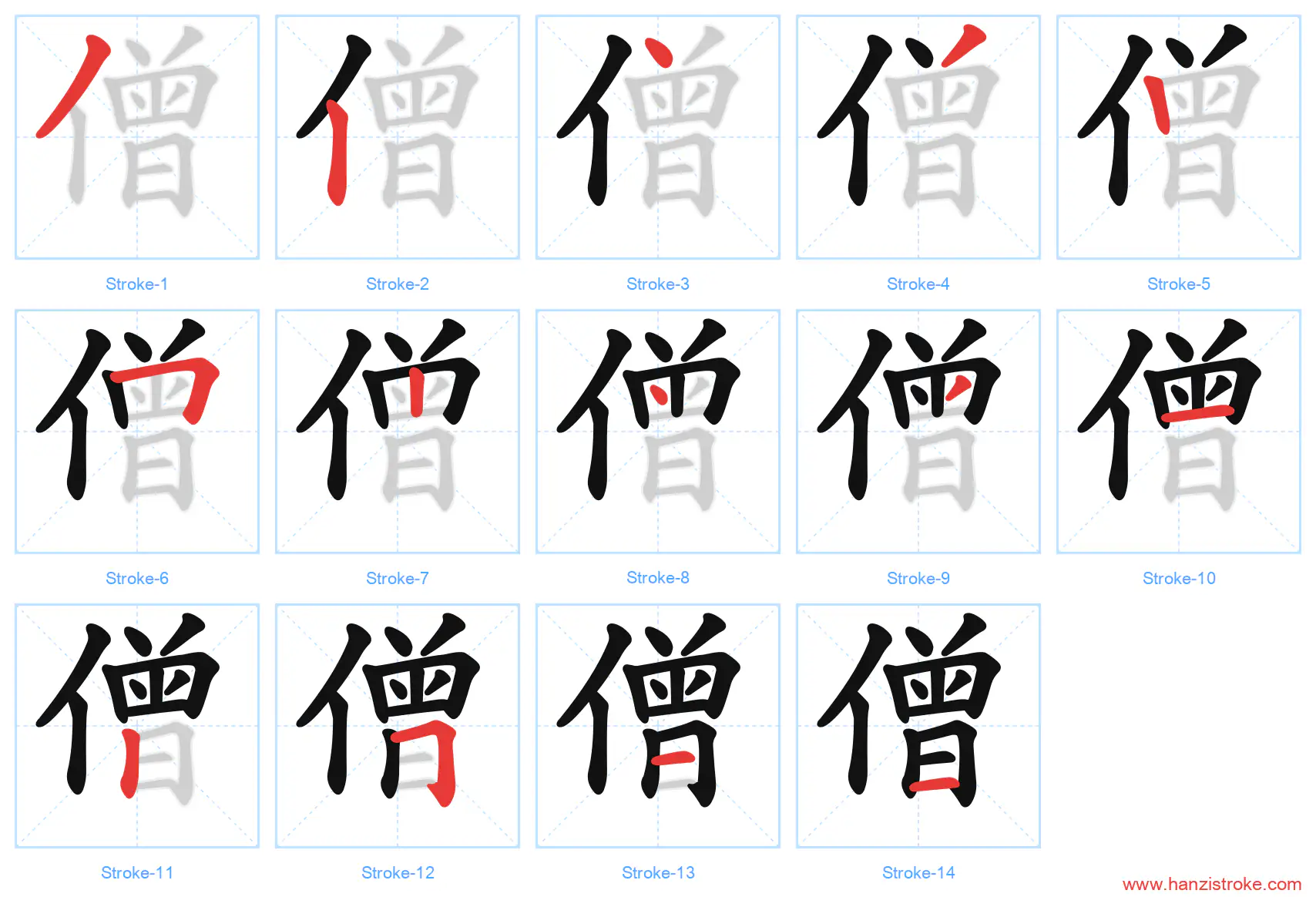 Free Printable Handwriting Practice with Stroke Order: 僧