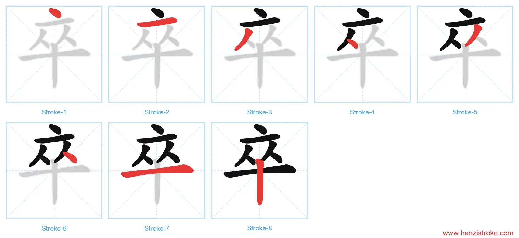 Free Printable Handwriting Practice with Stroke Order: 卒
