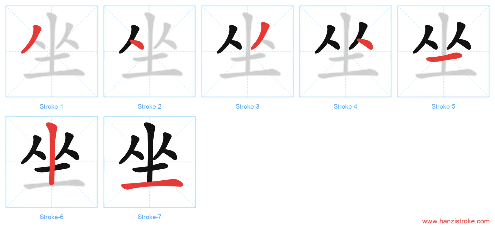 Free Printable Handwriting Practice with Stroke Order: 坐