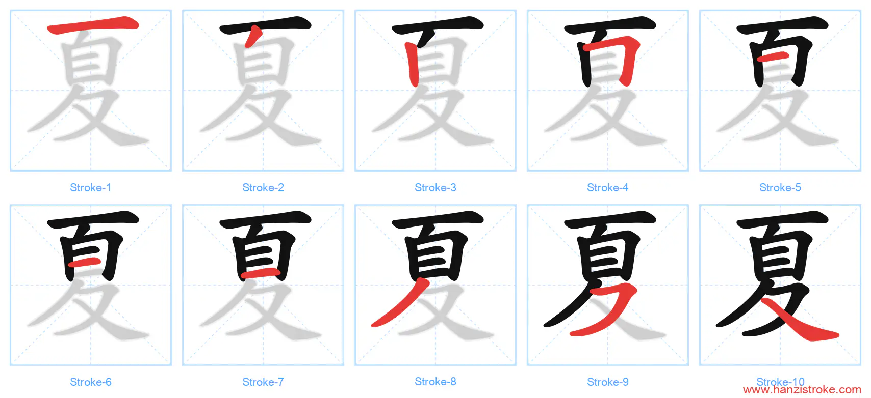 Free Printable Handwriting Practice with Stroke Order: 夏