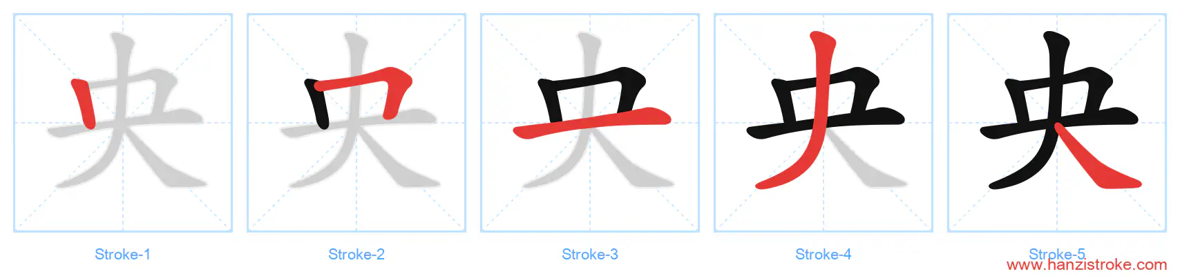 Free Printable Handwriting Practice with Stroke Order: 央