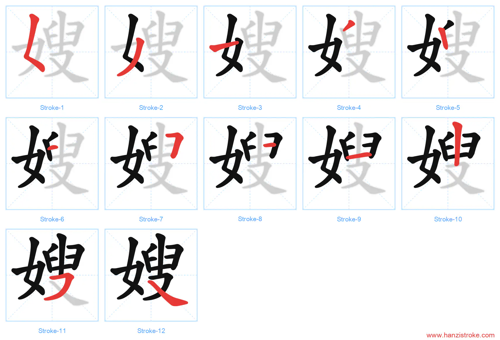 Free Printable Handwriting Practice with Stroke Order: 嫂