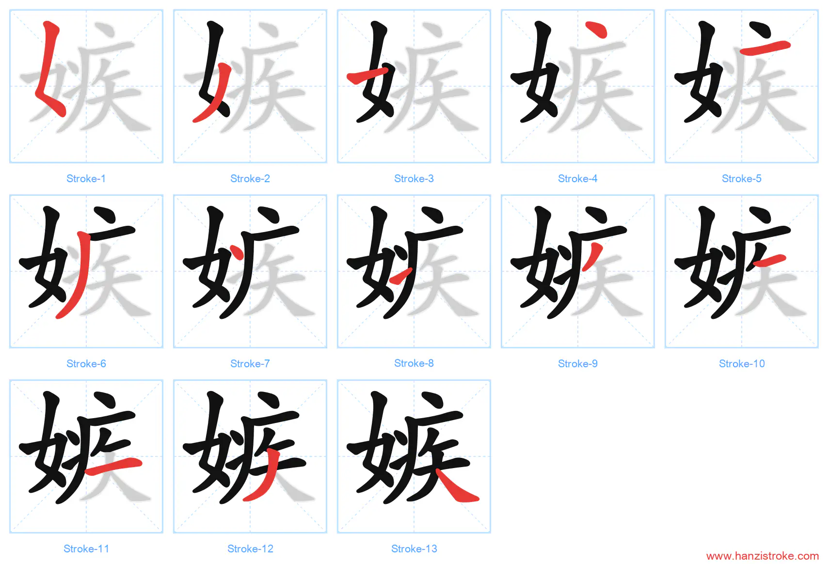 Free Printable Handwriting Practice with Stroke Order: 嫉