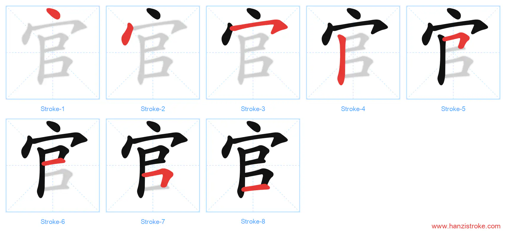 Free Printable Handwriting Practice with Stroke Order: 官