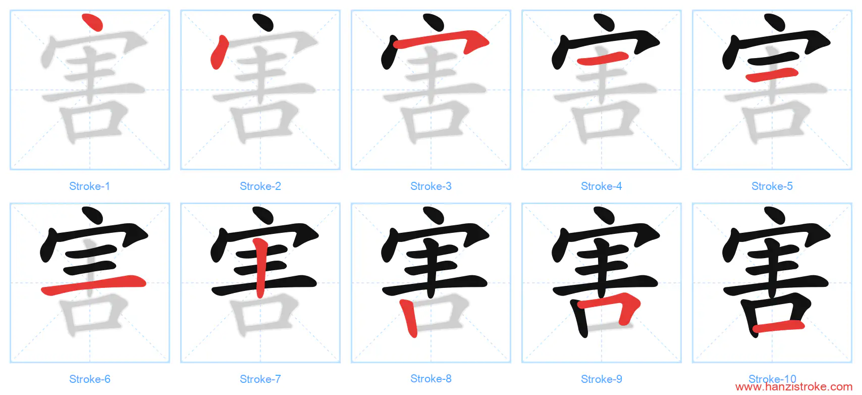 Stroke Order Diagrams 害