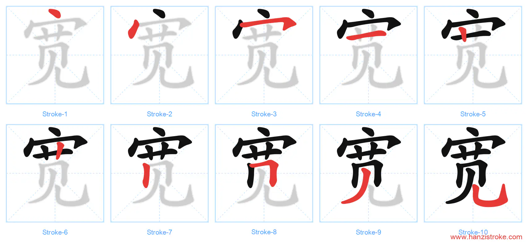 Free Printable Handwriting Practice with Stroke Order: 宽