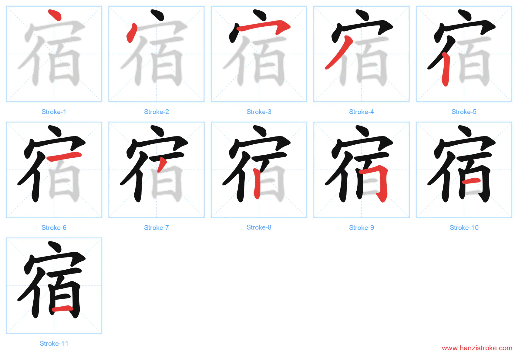 Free Printable Handwriting Practice with Stroke Order: 宿