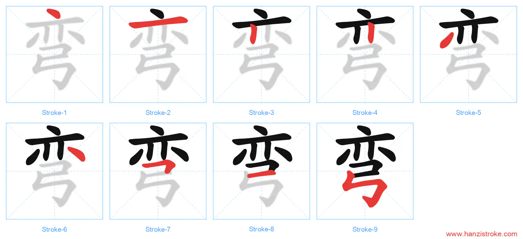 Free Printable Handwriting Practice with Stroke Order: 弯