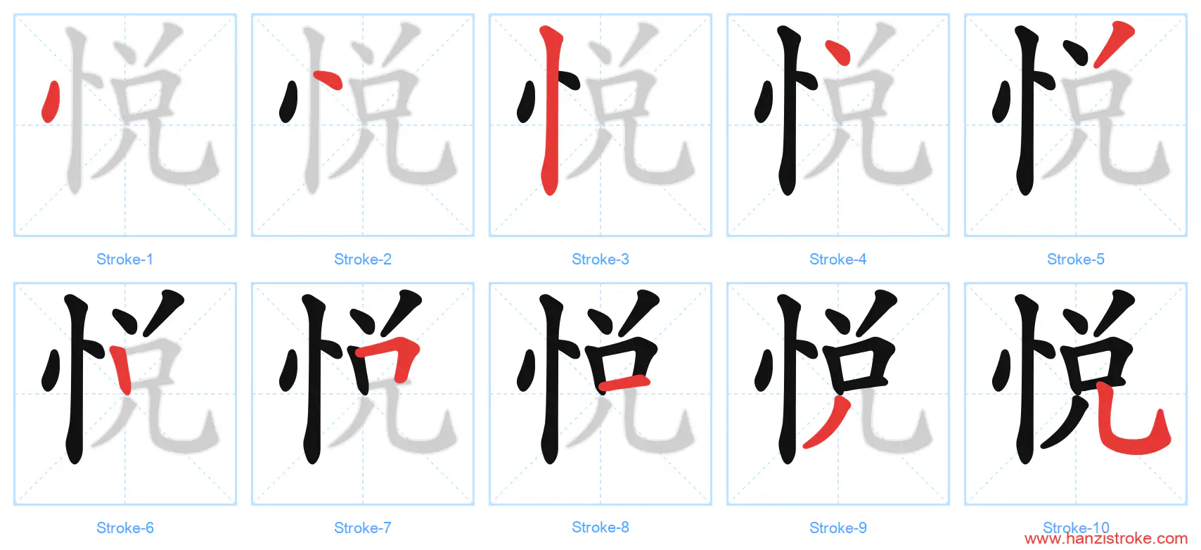Free Printable Handwriting Practice with Stroke Order: 悦
