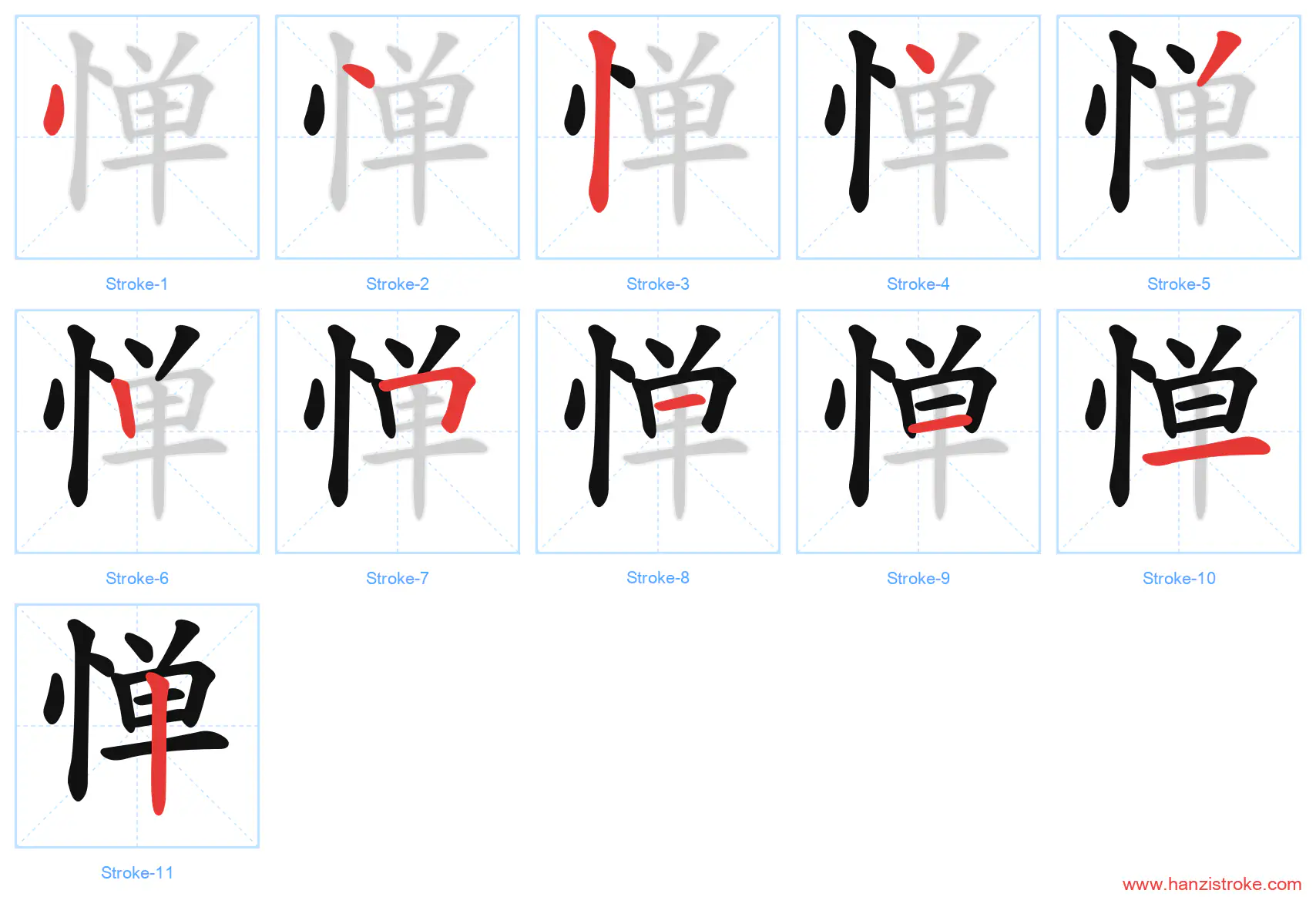 Free Printable Handwriting Practice with Stroke Order: 惮