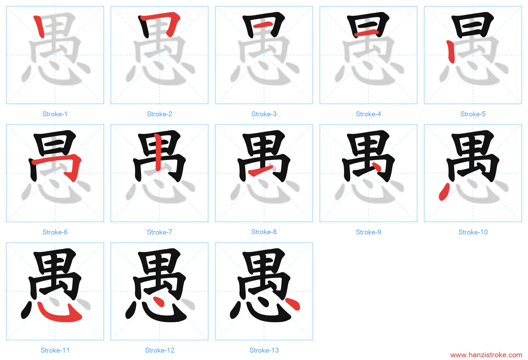 Free Printable Handwriting Practice with Stroke Order: 愚