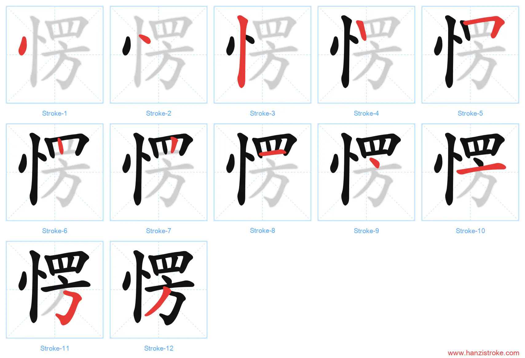 Free Printable Handwriting Practice with Stroke Order: 愣