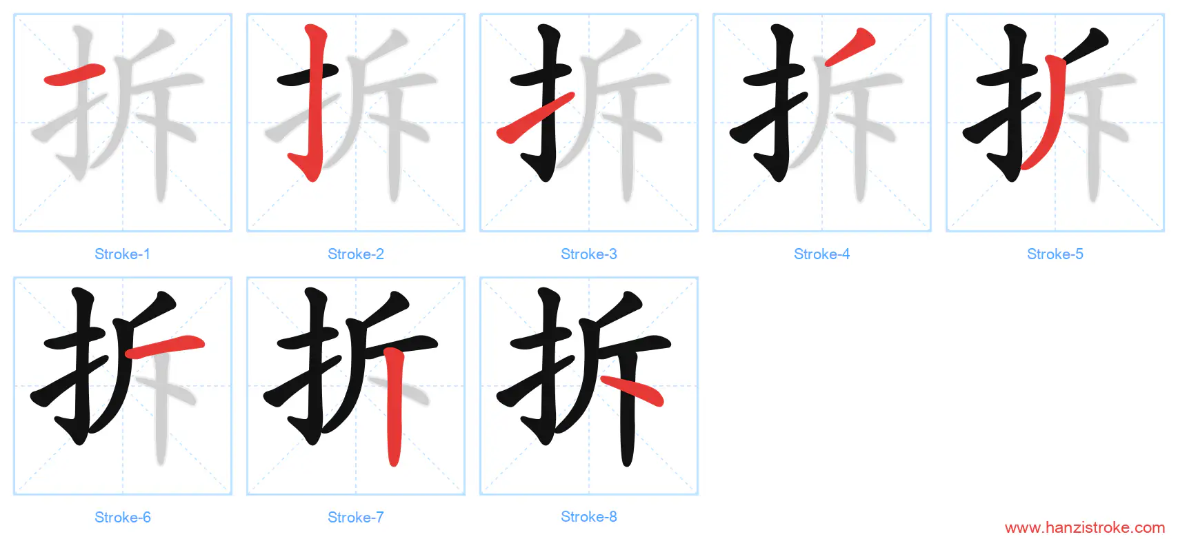 Free Printable Handwriting Practice with Stroke Order: 拆