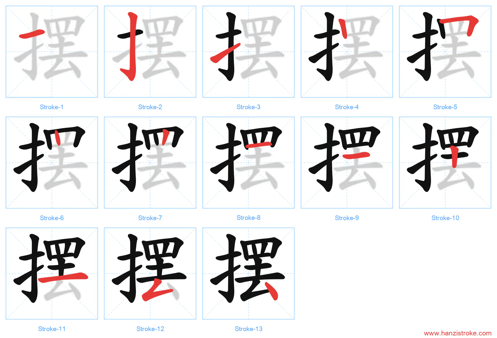 Free Printable Handwriting Practice with Stroke Order: 摆