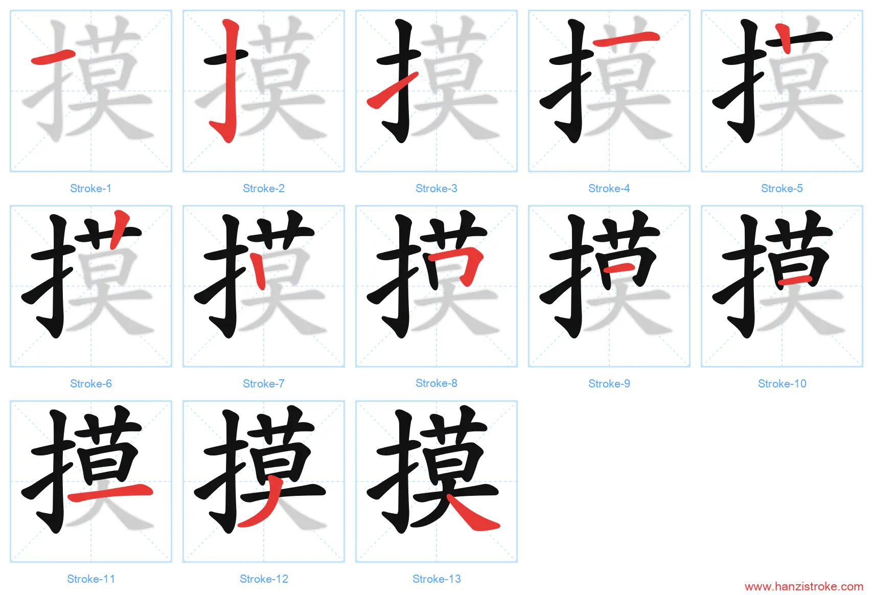 Free Printable Handwriting Practice with Stroke Order: 摸