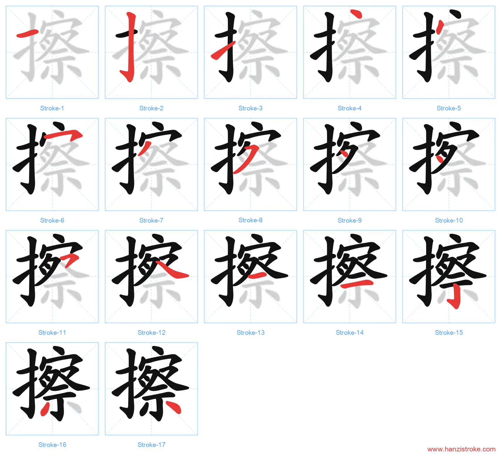 Free Printable Handwriting Practice with Stroke Order: 擦