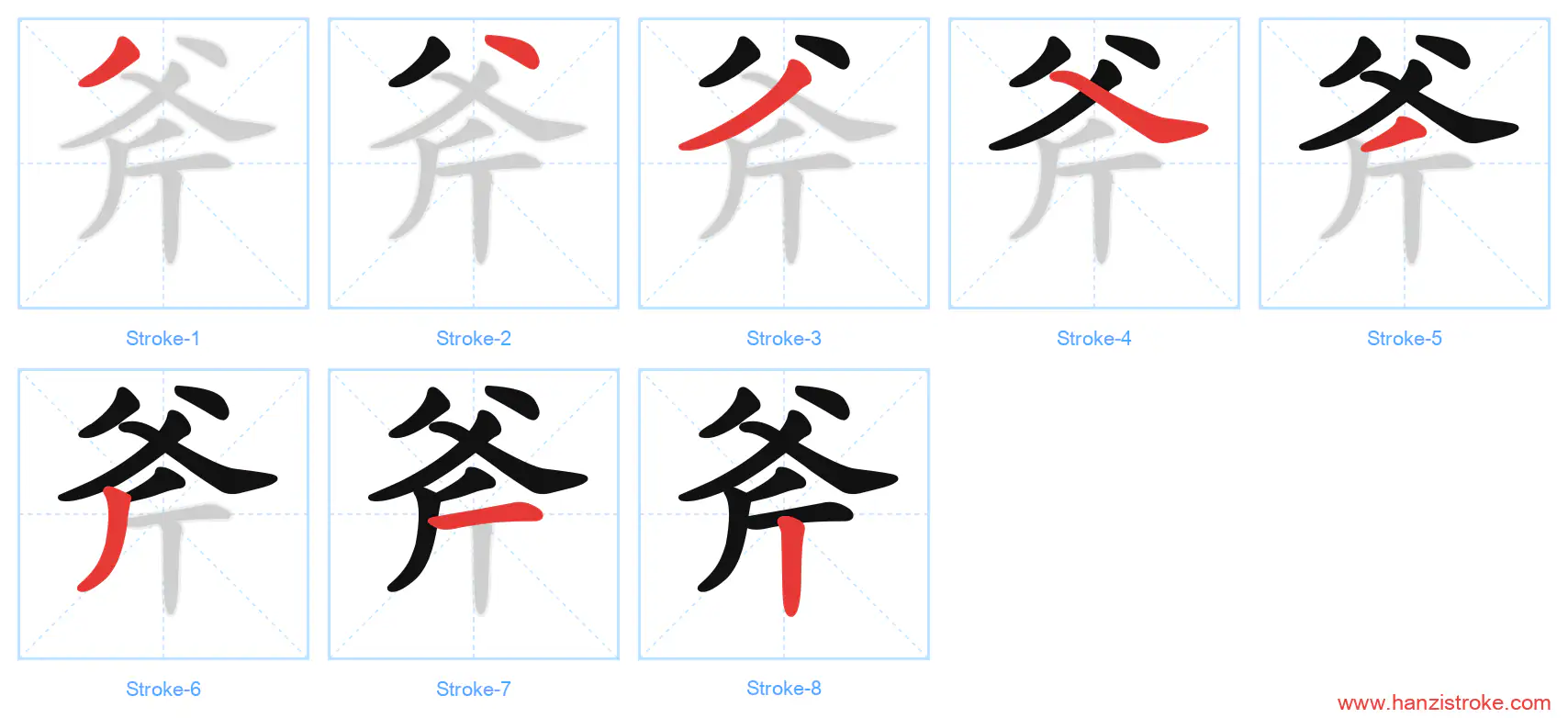 Free Printable Handwriting Practice with Stroke Order: 斧