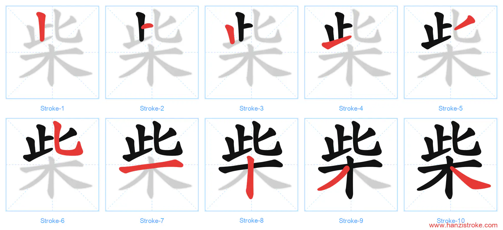 Free Printable Handwriting Practice with Stroke Order: 柴