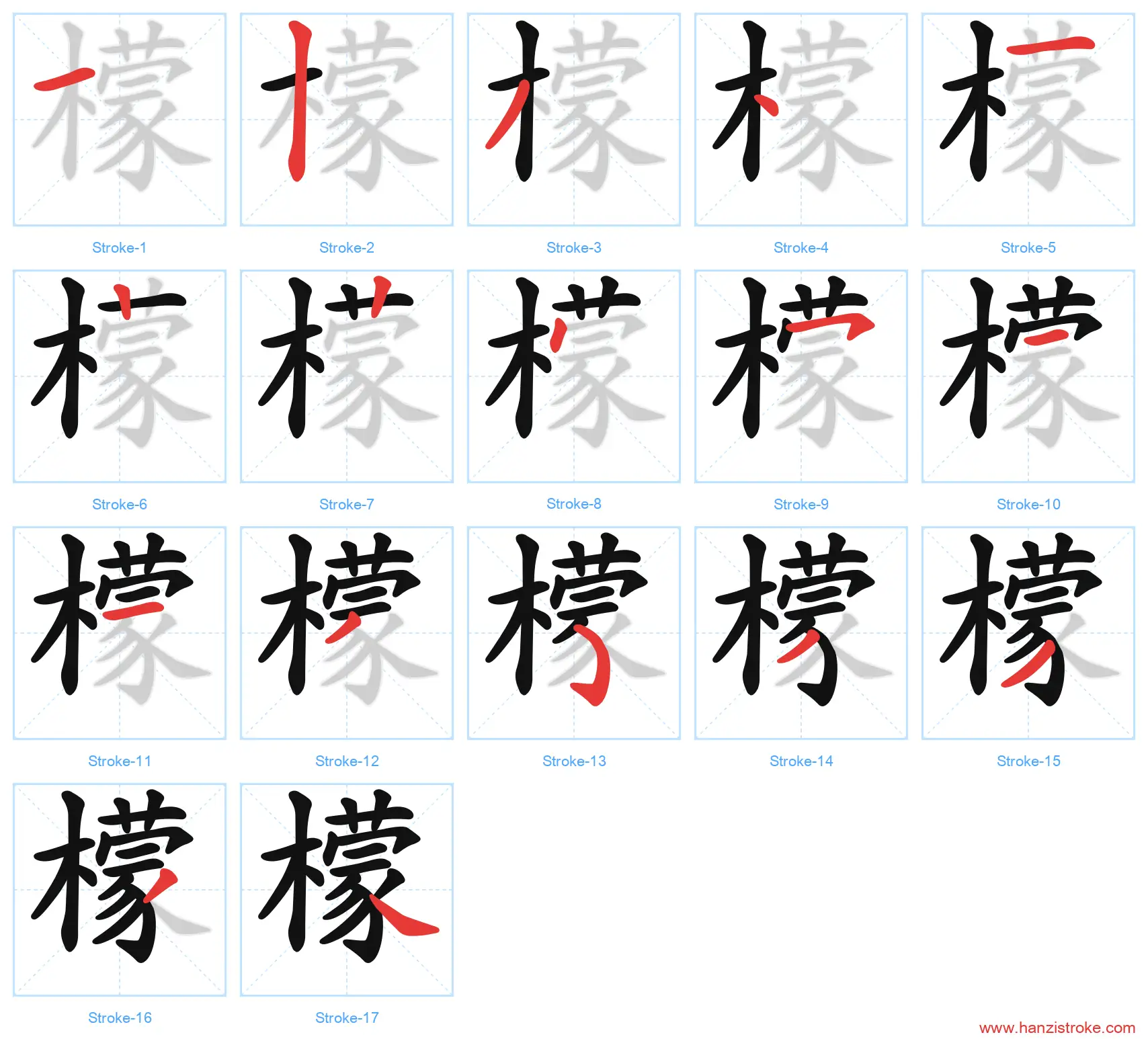 檬 (méng): Type of locust oracacia — Stroke Order & Writing Guide