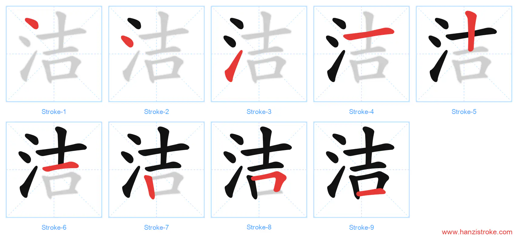 Free Printable Handwriting Practice with Stroke Order: 洁