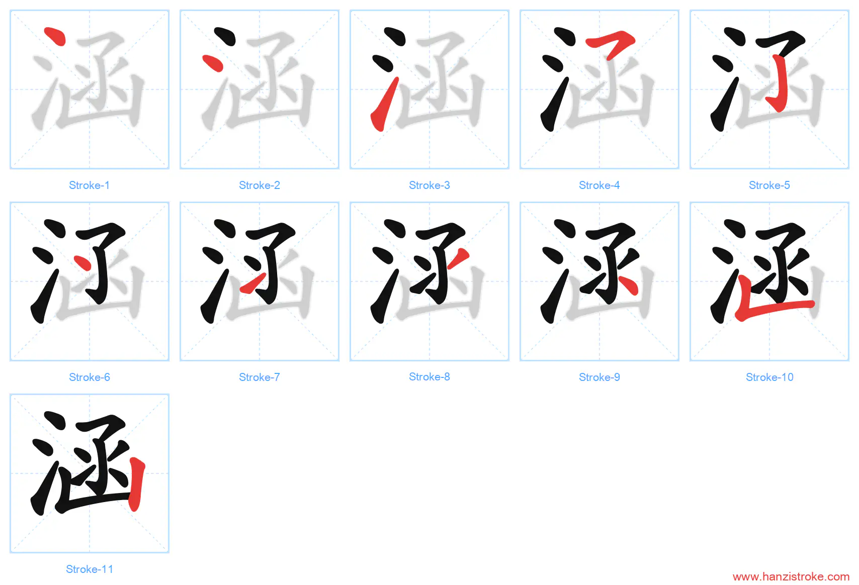 Free Printable Handwriting Practice with Stroke Order: 涵