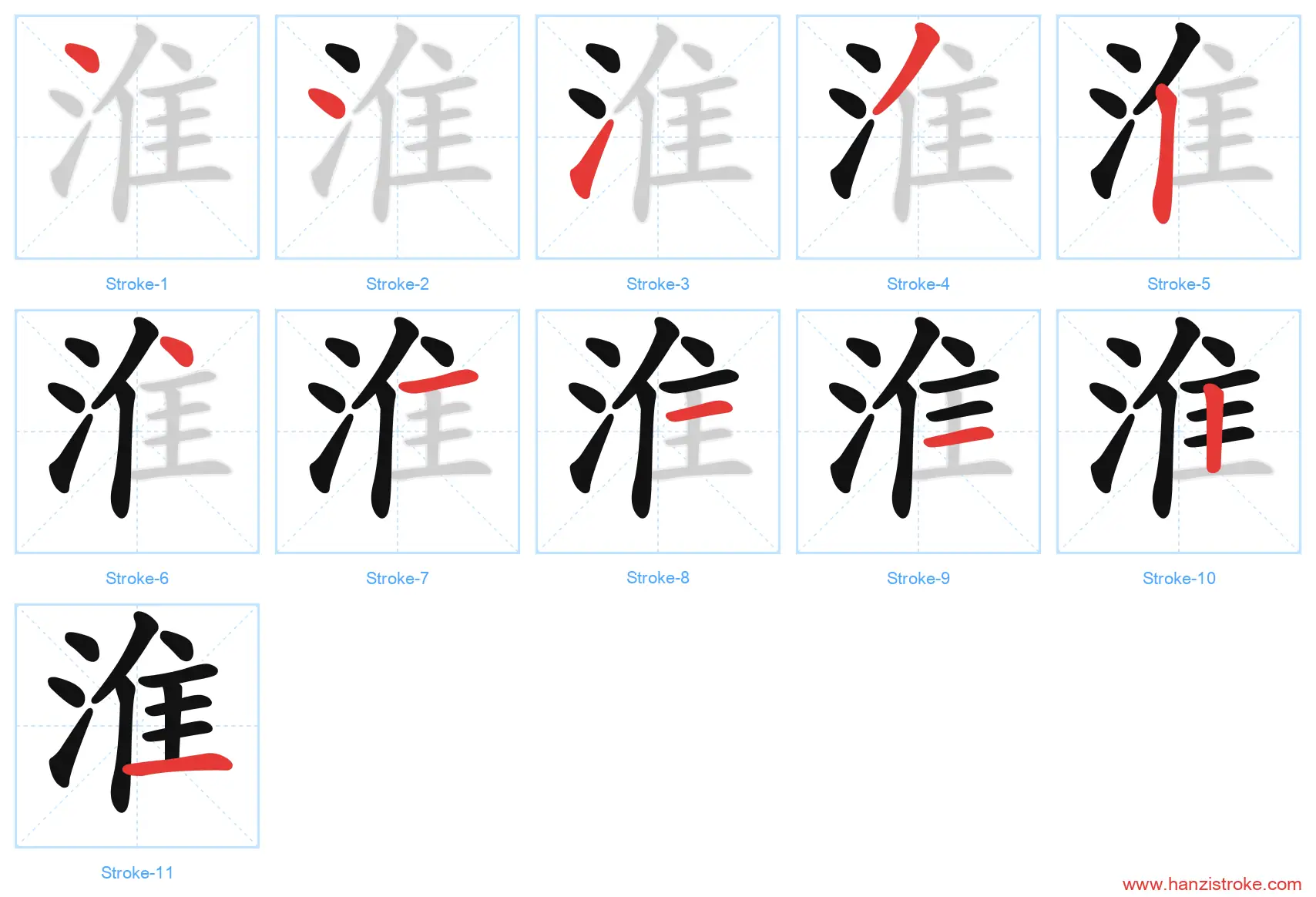 淮 (huái): River in Anhui province — Stroke Order & Writing Guide