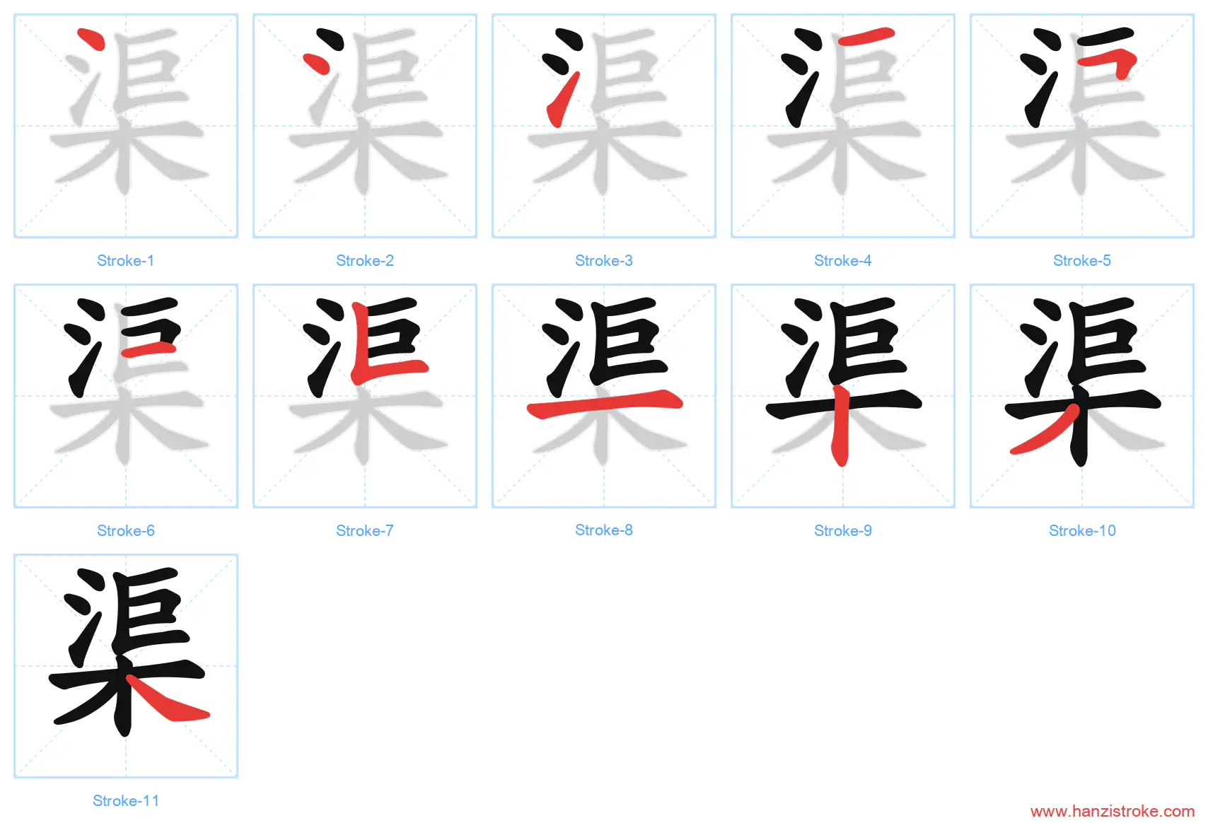Free Printable Handwriting Practice with Stroke Order: 渠
