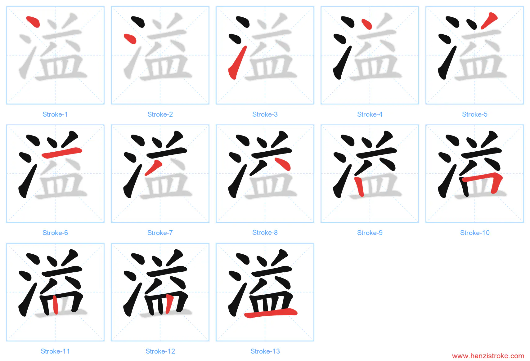 Free Printable Handwriting Practice with Stroke Order: 溢
