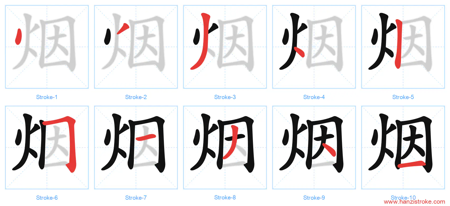 Free Printable Handwriting Practice with Stroke Order: 烟
