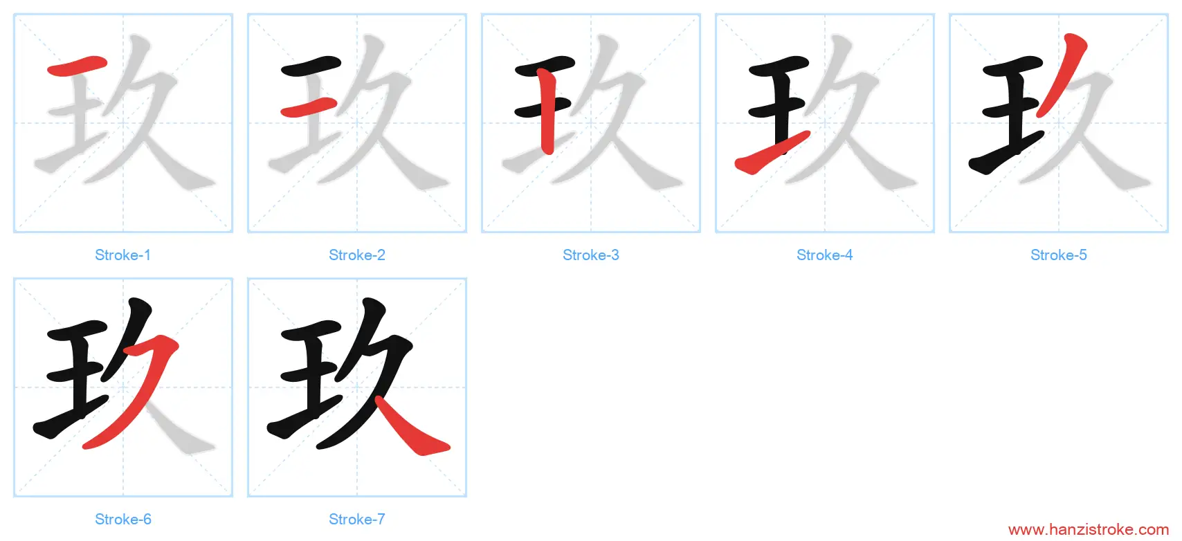 玖 (jiǔ): Black-colored jade — Stroke Order & Writing Guide