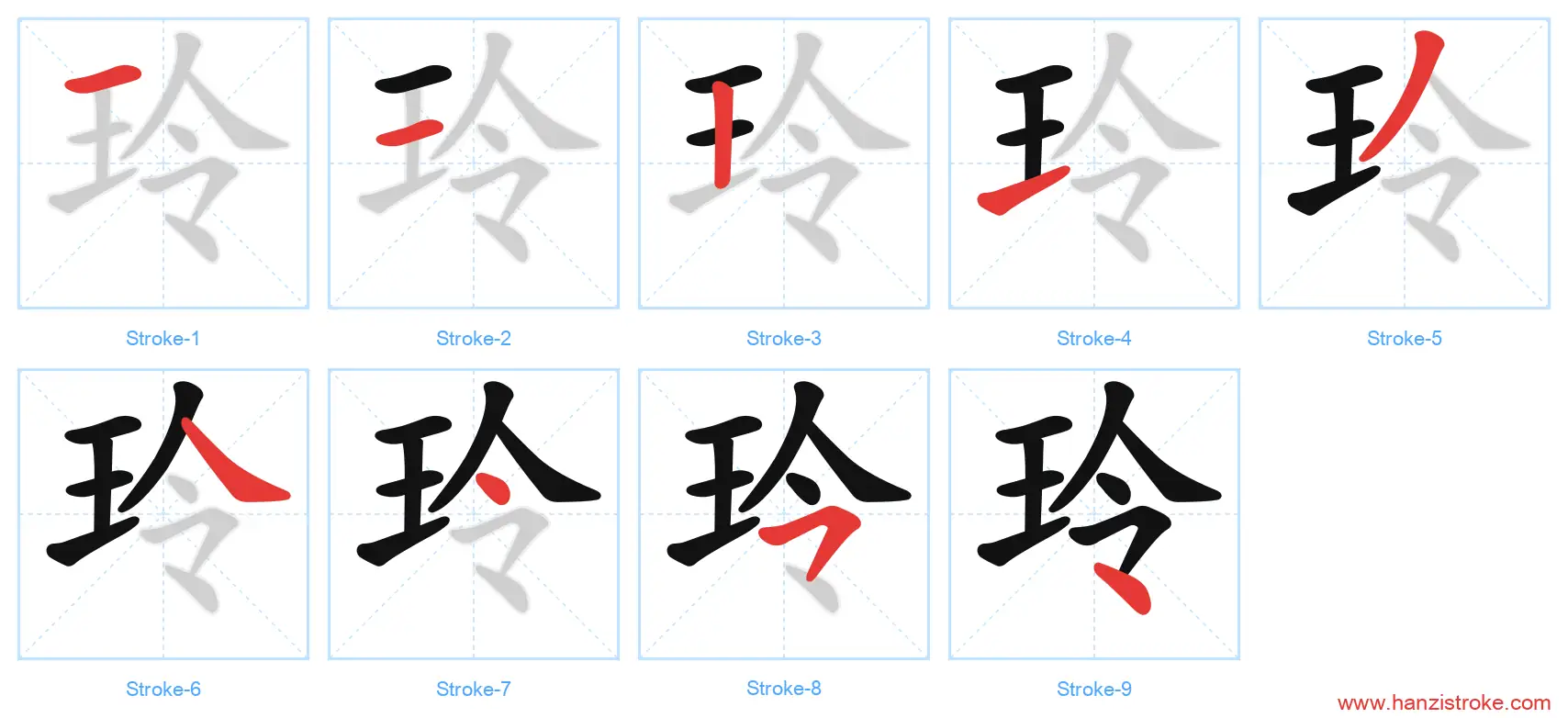 玲 (líng): Tinkling of jade — Stroke Order & Writing Guide