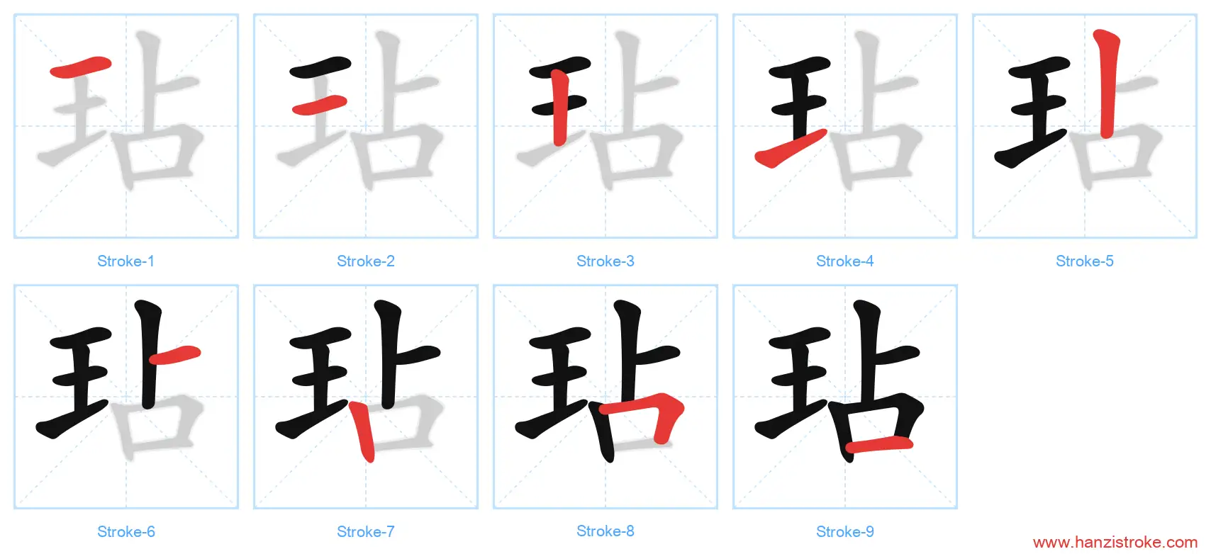 玷 (diàn): Flaw in gem — Stroke Order & Writing Guide