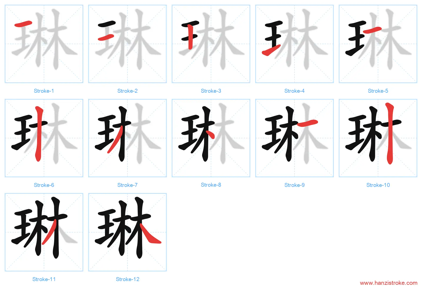 琳 (lín): Beautiful jade — Stroke Order & Writing Guide