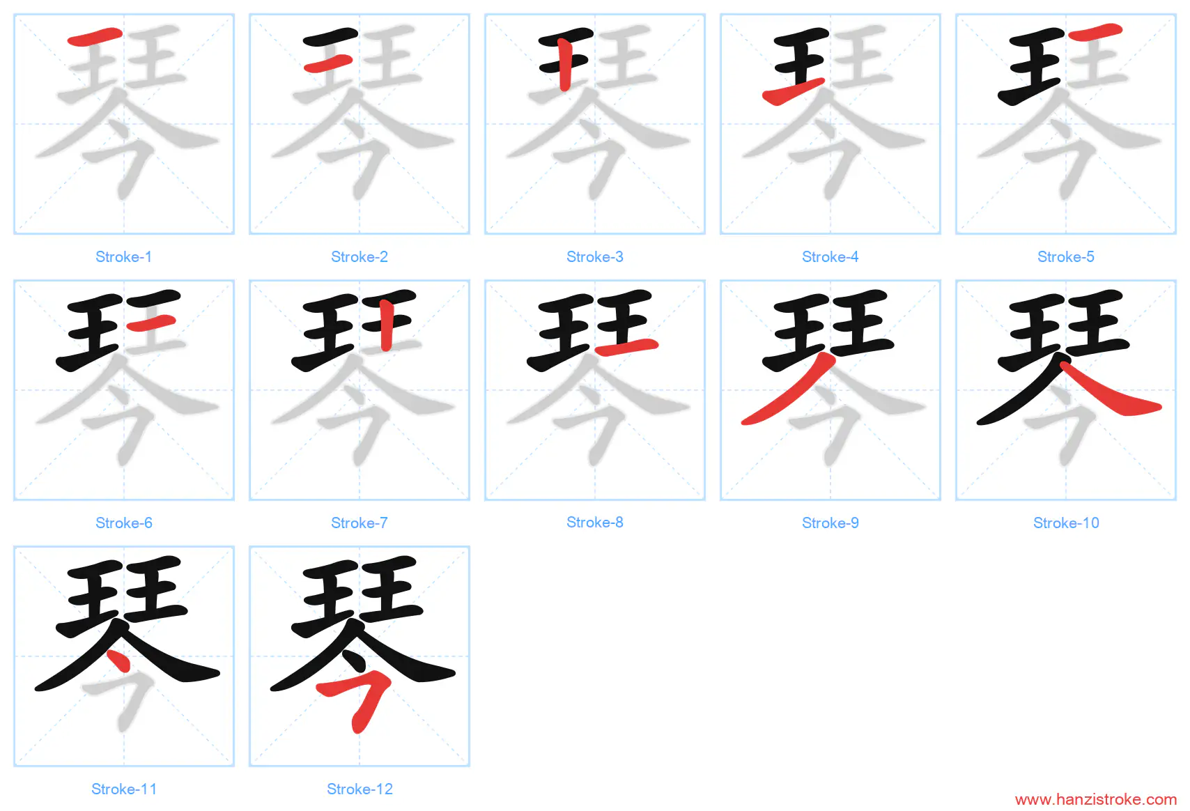 Free Printable Handwriting Practice with Stroke Order: 琴