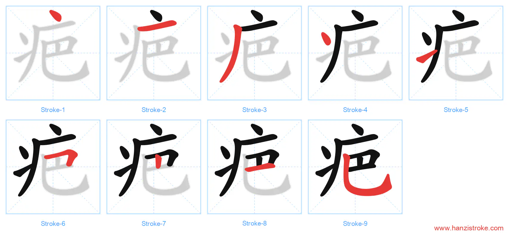 Free Printable Handwriting Practice with Stroke Order: 疤