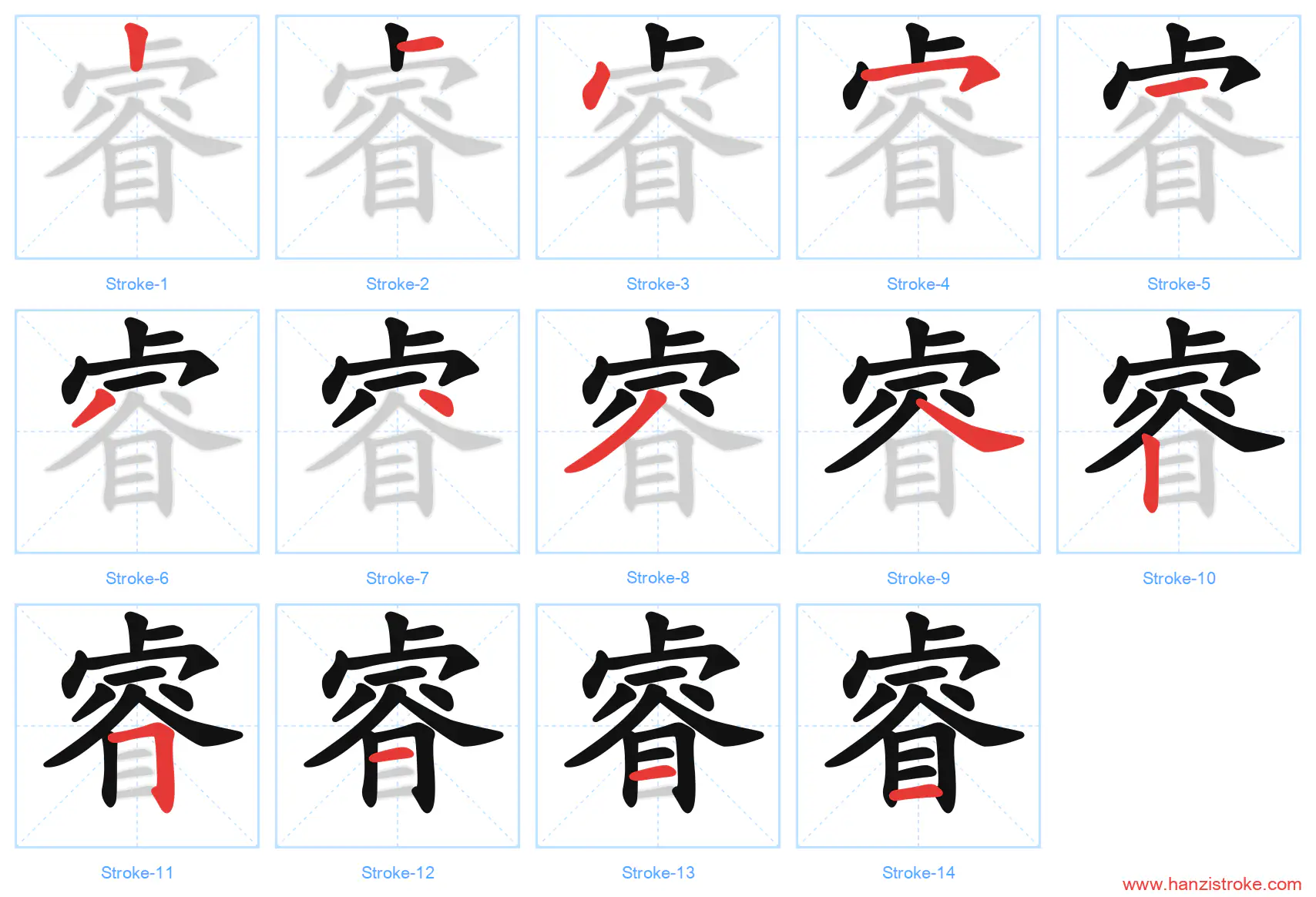 睿 (ruì): Wise — Stroke Order & Writing Guide