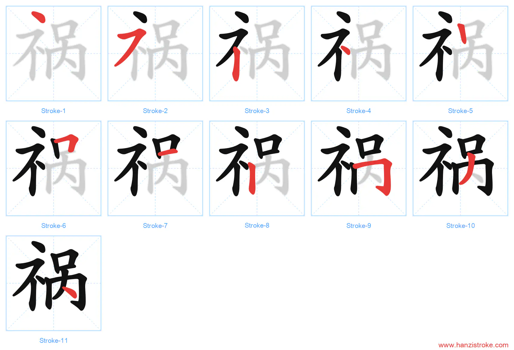 Free Printable Handwriting Practice with Stroke Order: 祸