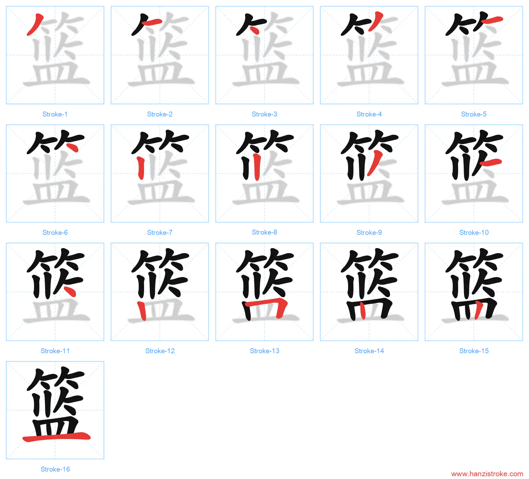 Free Printable Handwriting Practice with Stroke Order: 篮