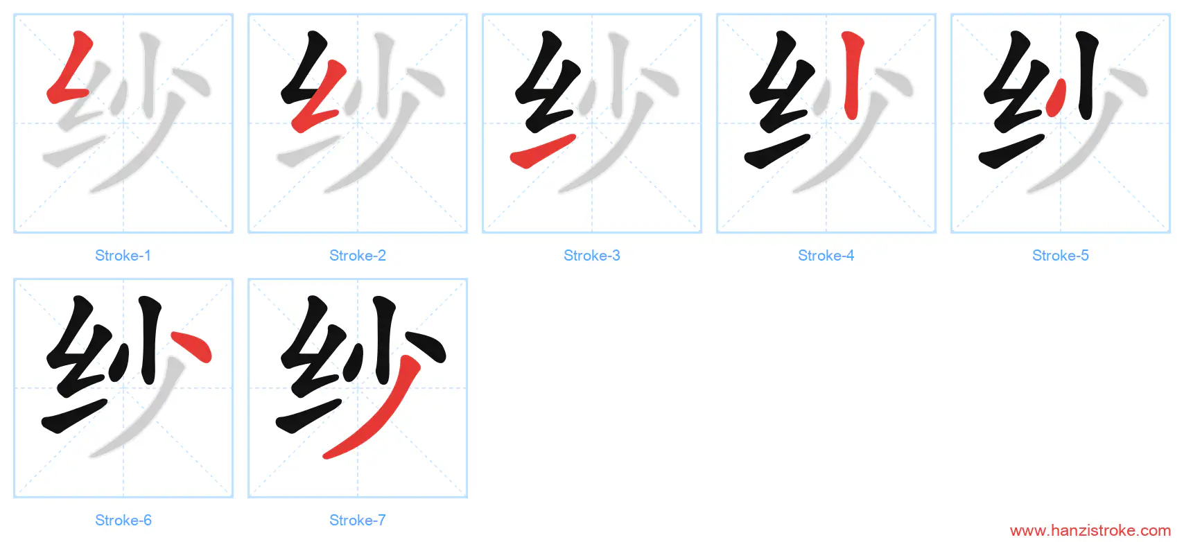 Free Printable Handwriting Practice with Stroke Order: 纱