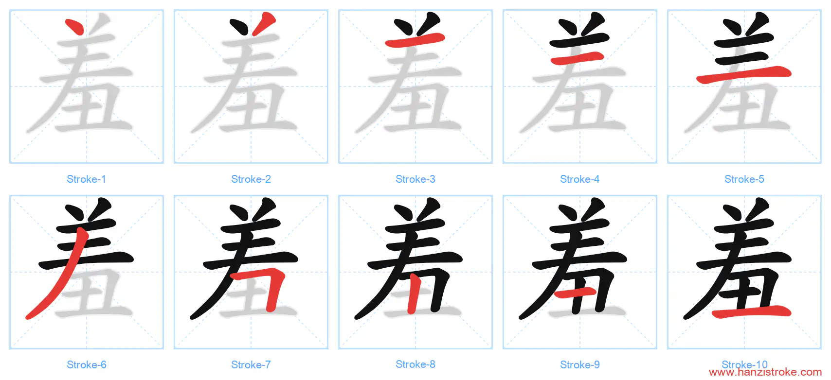 Free Printable Handwriting Practice with Stroke Order: 羞
