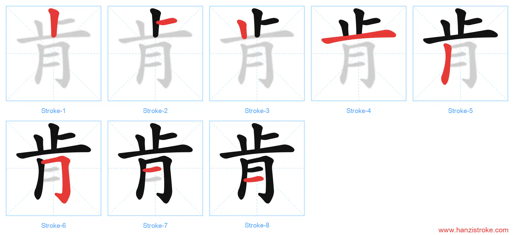 Free Printable Handwriting Practice with Stroke Order: 肯