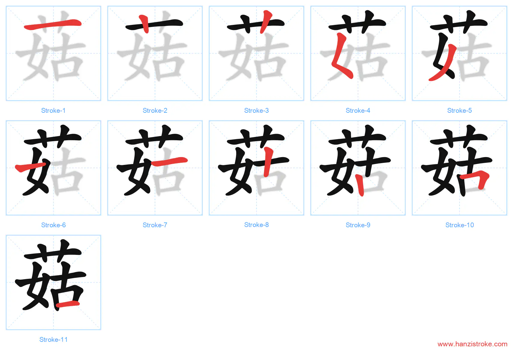 Free Printable Handwriting Practice with Stroke Order: 菇