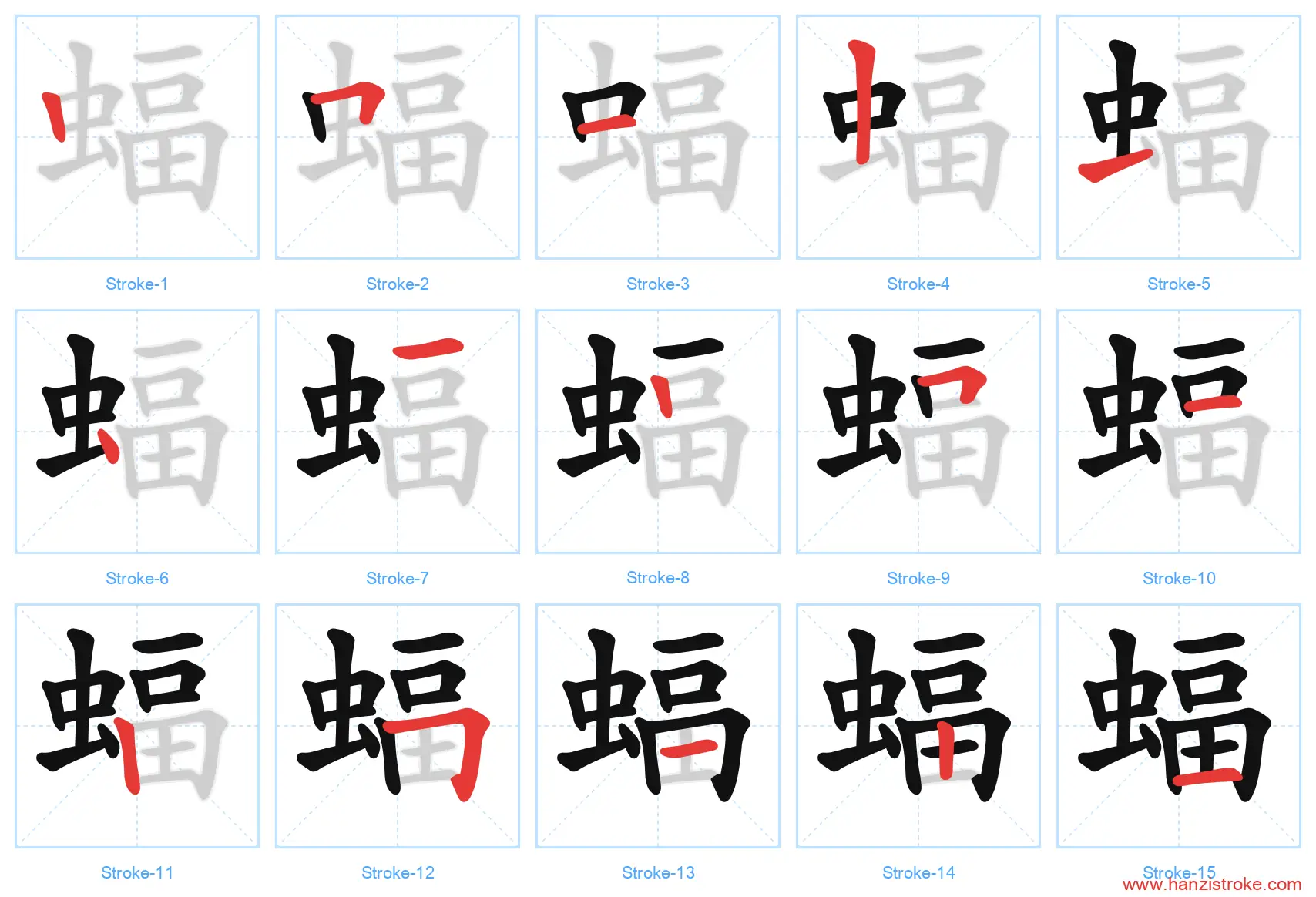 蝠 (fú): Kind of bat — Stroke Order & Writing Guide